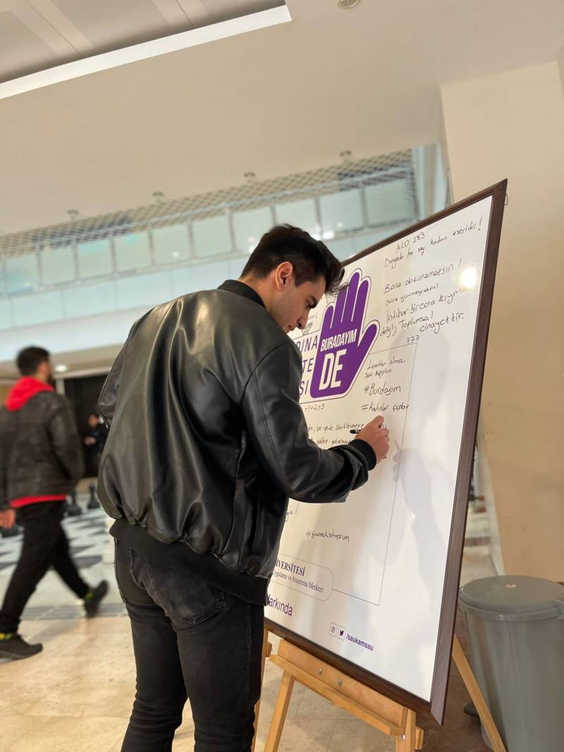 25 Kasım Kadına Yönelik Şiddete Karşı Uluslararası Mücadele ve Dayanışma Günü kapsamında Sakarya Üniversitesi Kadın Araştırmaları Uygulama ve Araştırma Merkezi tarafından üniversite öğrencilerine yönelik birtakım sosyal sorumluluk projeleri düzenlenmektedir. Bunlar arasında “Kadına Şiddete Karşı Buradayım De!” temalı duvar gazetesi yer almaktadır. Sakarya Üniversitesinin farklı fakülte binalarının girişlerine konulan panoya başta öğrenciler olmak üzere, akademisyenler şiddetin nedenlerine, önlenmesine yönelik düşünce ve duygularını resim çizerek ya da kısa özlü sözler yazarak ifade ettiler. Oldukça dikkat çeken etkinlik sonunda oluşturulan duvar gazetesi SAÜKAM ofisinde sergilenecektir.