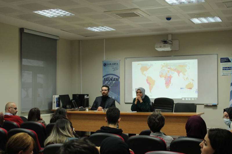 "Türkiye'de Kadına Yönelik Şiddetle Mücadele Politikaları ve İstanbul Sözleşmesi" konulu panel düzenlendi. Panelde paradigma, politika ve pratikteki yönleriyle Türkiye'de kadına şiddet olgusu ve İstanbul Sözleşmesi Doç. Dr. Handan Akyiğit'in başkanlığında ve Sakarya Üniversitesi Siyaset Bilimi Kamu Yönetimi öğretim üyelerinden Dr. Ömer Faruk Köktaş'ın aktarımıyla ele alındı.